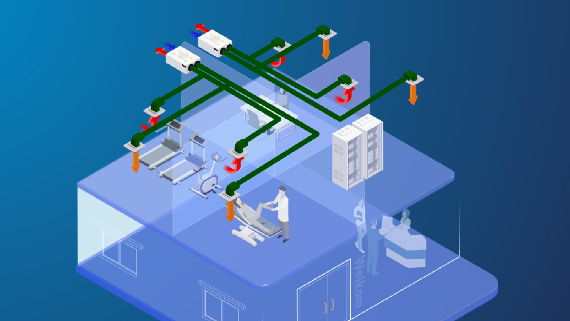 Elke WTW-unit bevat een ventilator, warmtewisselaar en filters. De afgevoerde lucht draagt via de wisselaar warmte over aan de binnenkomende lucht, waardoor minder energie nodig is voor verwarming. De units kunnen autonoom werken of gekoppeld worden aan het gebouwbeheersysteem. Sommige modellen zijn regelbaar per ruimte of gekoppeld aan CO2- en bewegingssensoren.